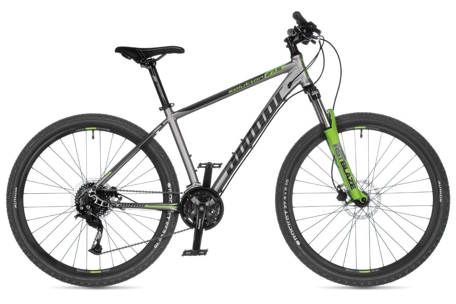 Бренд AUTHOR Модель 27.5 Solution Год 2024 Серия Solution Материал рамы Алюминий (Alloy) Рама/описание alloy 6061 27.5 Тип вилки Амортизационная (пружина) Вилка/регулировки RST Blaze 27.5 ML, lock out (100 mm) Диаметр колес 27.5" (650B) Обода AUTHOR Xenon 27.5 32 holes Резина AUTHOR Rocket 27.5' ? 2.10 Тормоза Дисковые гидравлические Тормоз TEKTRO HD-M280 disc hydraulic (6' rotors) Уровень оборудования Продвинутый Шифтеры SHIMANO Alivio (27) Переключатель передний SHIMANO Altus (34.9) Переключатель задний SHIMANO ALIVIO Кассета SHIMANO HG200-9 11-36 (9) Цепь KMC Z9 Каретка SHIMANO BB-UN101 cartridge Шатуны SHIMANO MT101 40-30-22 teeth 170 / 175 mm cranks Количество скоростей 27 Руль AUTHOR rizer 15 mm 9° 660 / 680 mm Рулевая колонка PRESTINE Integrated 1-1/8 Вынос AUTHOR alloy Седло AUTHOR Courier Подседельный штырь AUTHOR alloy (31.6) Педали resin Втулка передняя QUANDO Disc 32 holes Пол/возраст Мужской Грипсы длина/тип AUTHOR kratton rubber -